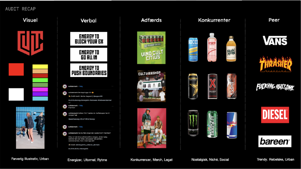 With our project, we have thoroughly examined Cult, a brand owned by Royal Unibrew and specializing in energy drinks and cider. We have analyzed their history, strategy with “Cult girls,” and identified the core issues. Through audits, interviews, surveys, and target audience analyses, we gained a clear picture of Cult’s current “awkwardness” challenges