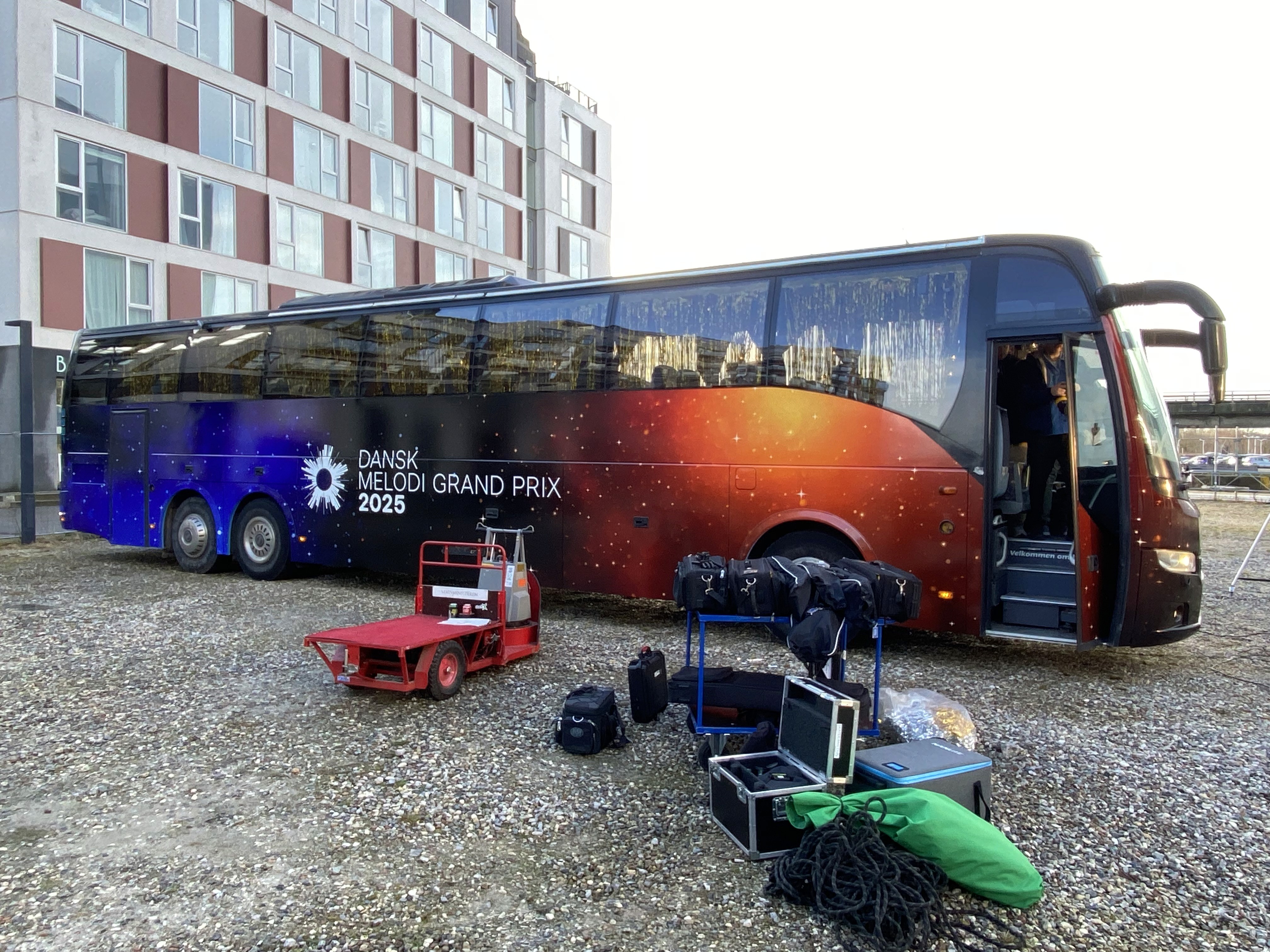 Som en del af mit praktikophold hos DR Design udviklede jeg et visuelt univers til Dansk Melodi Grand Prix. Grafikken blev brugt som scenetæppe bag værterne og blev efterfølgende anvendt i markedsføring på plakater i Herning, på busser og på sociale medier.